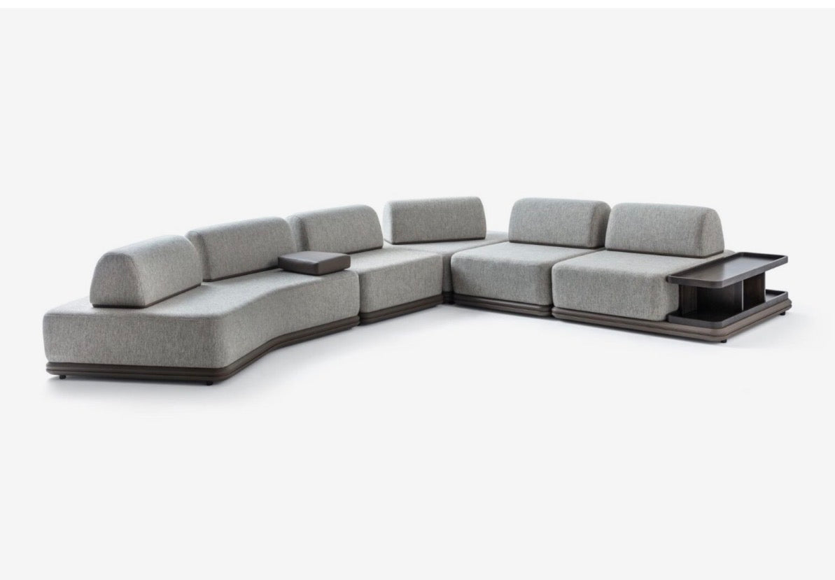 Afterglow is designed for spaces that feel expansive, calm, and effortlessly modern. The modular seating system creates a relaxed lounge environment where form and flexibility meet. Low sculptural profiles, wide seating modules, and warm wood bases bring a grounded architectural feel, while soft neutral upholstery keeps the atmosphere light and inviting. Afterglow is built for contemporary interiors that prioritize comfort, scale, and sophisticated minimalism.