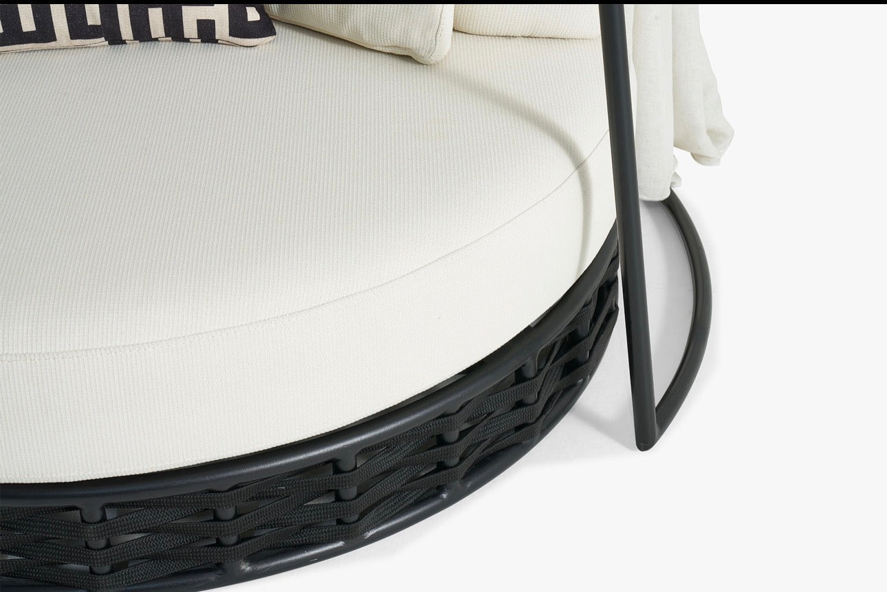 The Sanctuarie collection is designed to create a private moment of comfort and retreat within a space. A sculptural canopy frame surrounds the seat with soft draping that introduces movement and elegance. Plush cushioning and deep seating provide a relaxing lounge experience, while the structured base and refined materials maintain a modern architectural presence. Sanctuarie blends softness with statement design, offering a piece that feels both intimate and visually striking in luxury interiors.